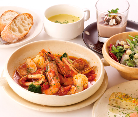 | + 前菜盛り合わせ ・ サラダ ・ スープ ・ パン ・ 季節のデザート | |