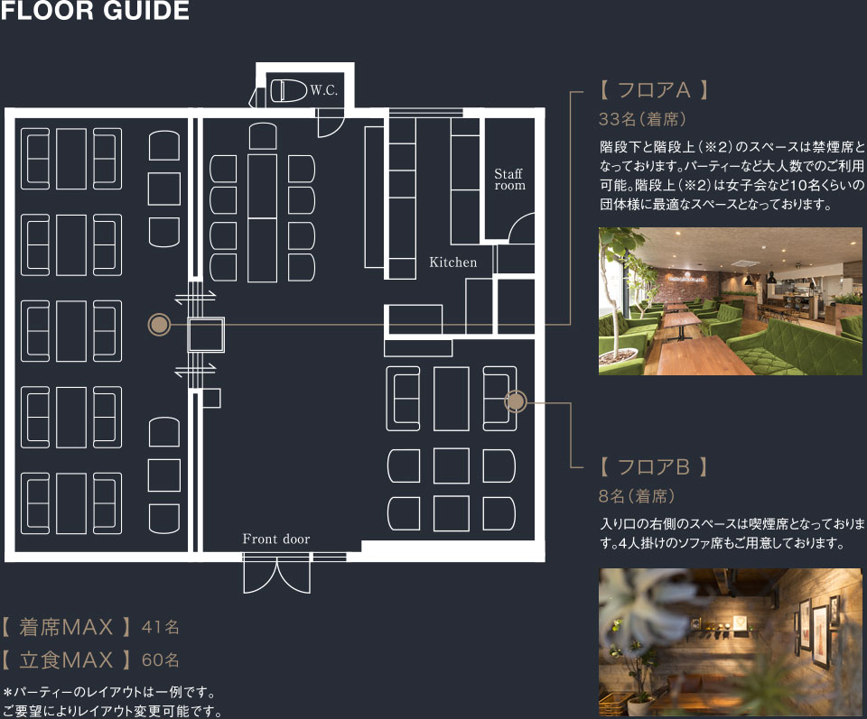 | 【 人 数 】 18名様から承ります。 | |